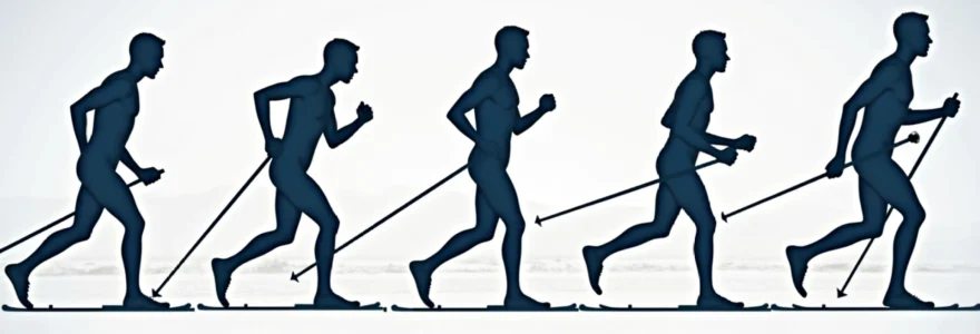 La mécanique de la foulée en marche nordique diffère significativement de celle de la marche traditionnelle. Comprendre et maîtriser ces spécificités est crucial pour maximiser les bénéfices de cette discipline tout en préservant votre corps. La foulée nordique se caractérise par une amplitude plus importante et une implication plus active de l’ensemble du corps, du talon jusqu’aux bras.