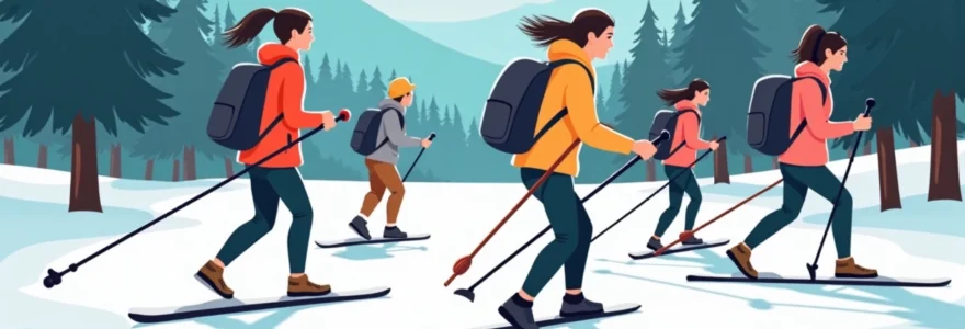 La technique de freinage, particulièrement utile en descente, doit également être enseignée avec soin. Les adolescents doivent apprendre à planter les bâtons légèrement devant eux pour réduire la vitesse et soulager la pression sur les genoux. Cette technique est essentielle pour prévenir les blessures et améliorer la confiance lors de la pratique sur terrains variés.
